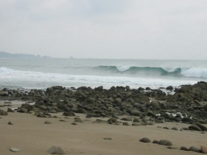 昨日から南よりの風が強く吹いていて、今日は北西に変わったので波はいいかなぁと思って見に行きました。