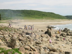 私達が通れるのは、潮が満ちたり引いたりする海岸線の一部分だけでしたので、足場の悪い岩場を延々と歩いて行きました。