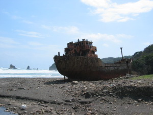 すぐ横に座礁した船があるのですが、見掛け通りお化けが出そうな船なんですよ!