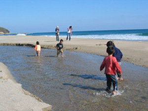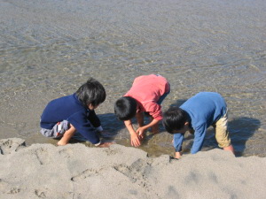 大丈夫やから出て来いよ!といくら言っても、「鬼に見付かる・・・。」と言ってしっかり私のズボンを掴んで離しません。 |