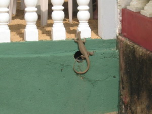 朝食を待っていると排水パイプからトカゲが出てきました。