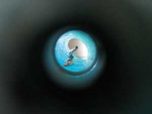 そしてそして一番の感動が、チューブに入っているサーファーの奥に魚眼レンズが付いていて、そこから覗くと本当に自分がチューブに入っているかのような視点から見れるんです!