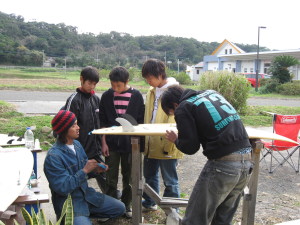 トロフィーは手作りで、木材屋で300円で買ってきた杉板を私がバーナーで焼いて、アキラ君がデザインを描いて完成しました。