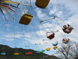 でもリュウキとミルは遊園地経験が少ないので、このブランコでもちょっとビビりながら乗りこんで行きました。