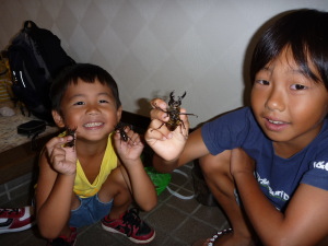 すぐ横のブースには、「世界のクワガタとカブトムシ」のコーナーがあったので、ちょっと入ってみました。