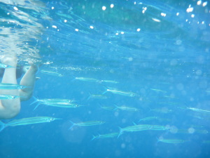 子供たちは飽きもせず、ずっと泳いでいました。 |