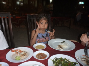 タカトは機内食をがっついて食べたら、ガリ(生姜)を食べたらしく、変な顔になるわ、寿司は口から出すわ、わめくわ、水くれ!言うけどお姉さんは遠いわ、英語で状況を説明できへんわ・・・って感じで参りました。