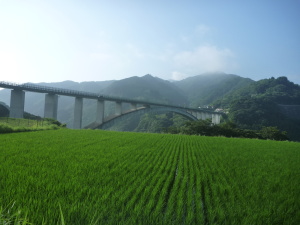 少し階段を降りたら、田んぼと橋の絶景の場所があった! |
