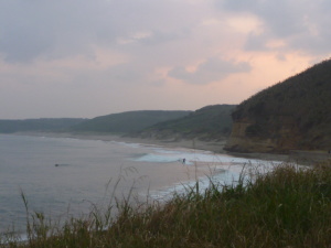 丘登りの後はイイ感じで潮が引いたので、某ポイントでサーフィンをしました。 |