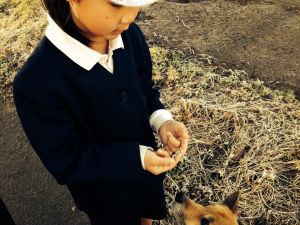 子供達が木を揺らすと花びらが降ってきたので、丁度満開くらいですね。