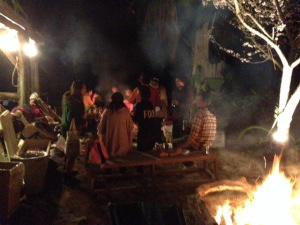 今回の目玉企画は、夜桜を見ながらのドラム缶風呂らしいです!