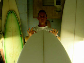 色々テストを繰り返した結果、前足部分のシングルコンケーブを多少深めに入れ、フィンのあたりからダブルコンケーブに変化させてテールへ抜いています。 前足へ加重させて踏み込んだ際の加速スピードと、テール加重の回転性をバランスよく組み合わせています。